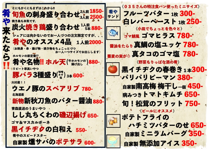 旬の食材を使った肴を基本としている為、おすすめはどんどん変わっていきます!旬のものをおいしく、季節を感じながら楽しんで頂けたらと。